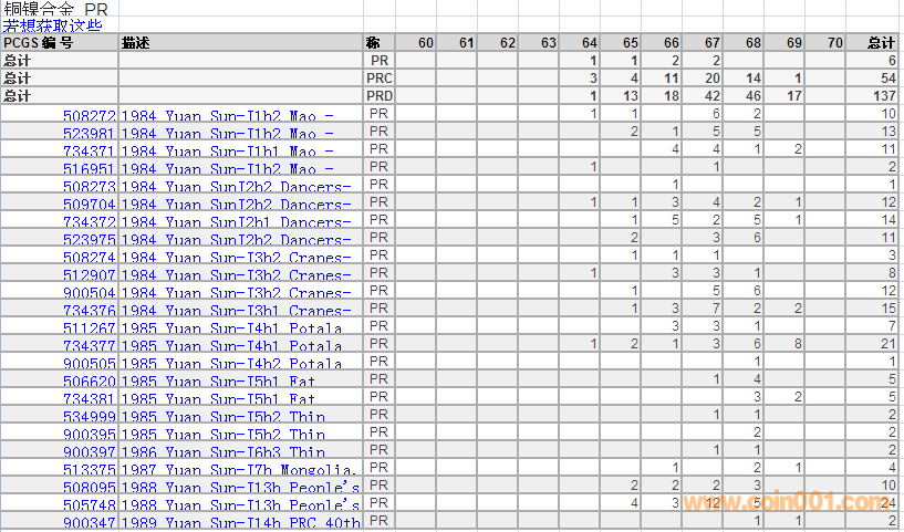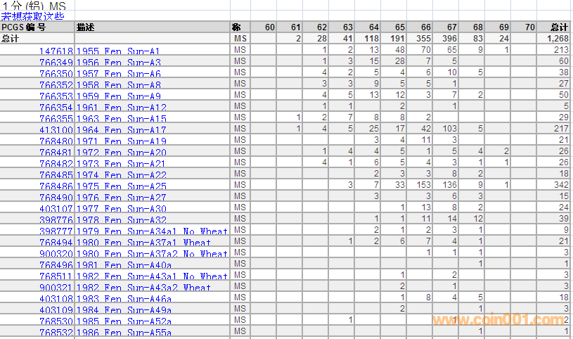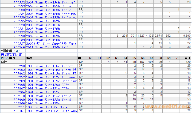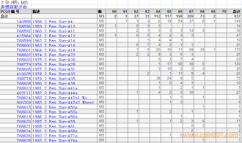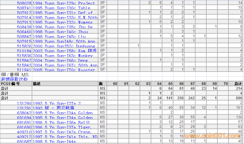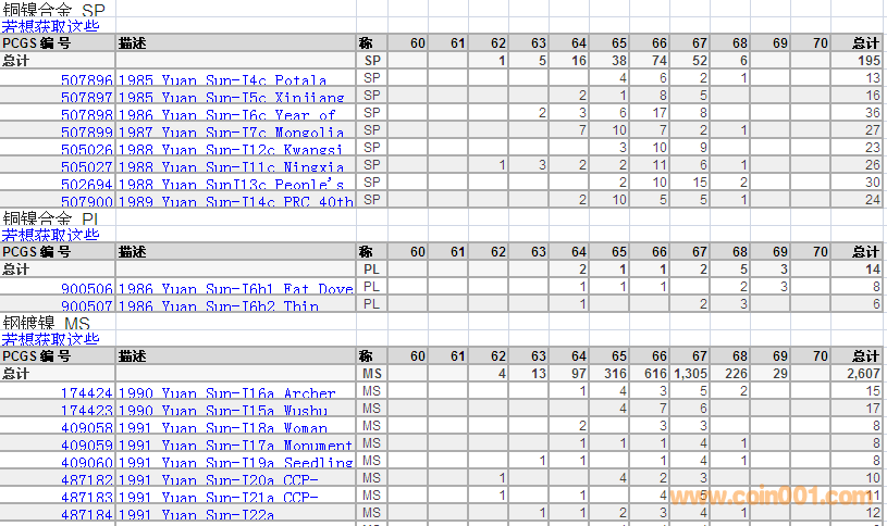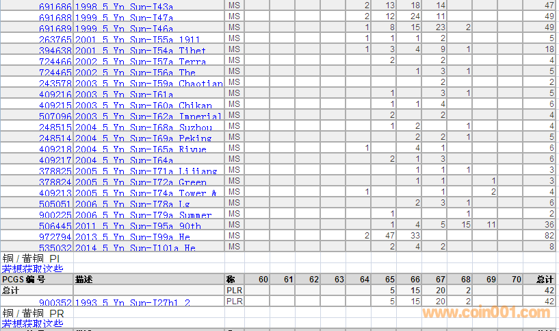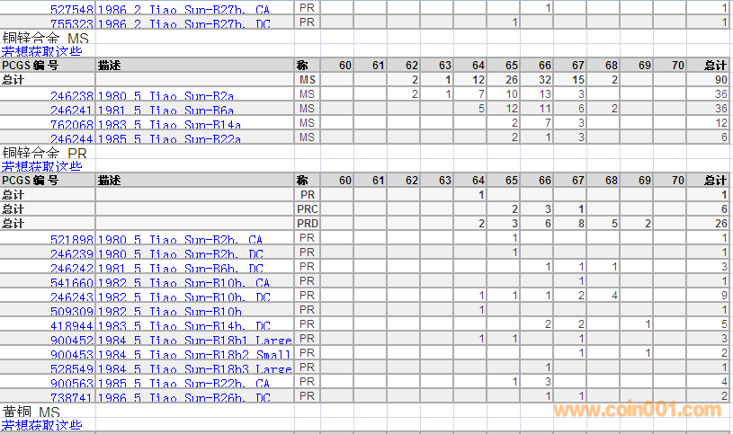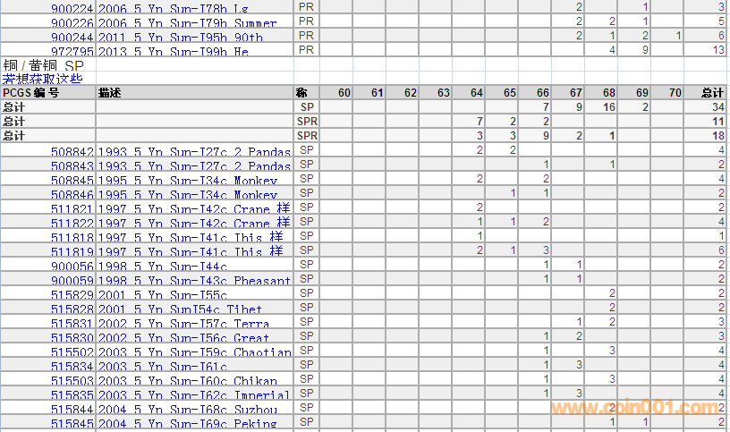 PCGS硬幣評級分?jǐn)?shù)分布 ..