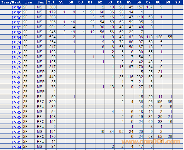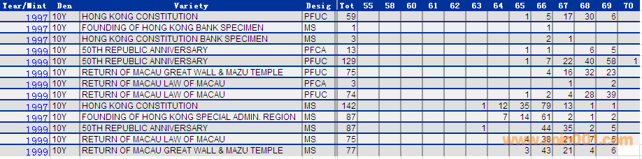 NGC硬幣評(píng)級(jí)分?jǐn)?shù)分布 ..