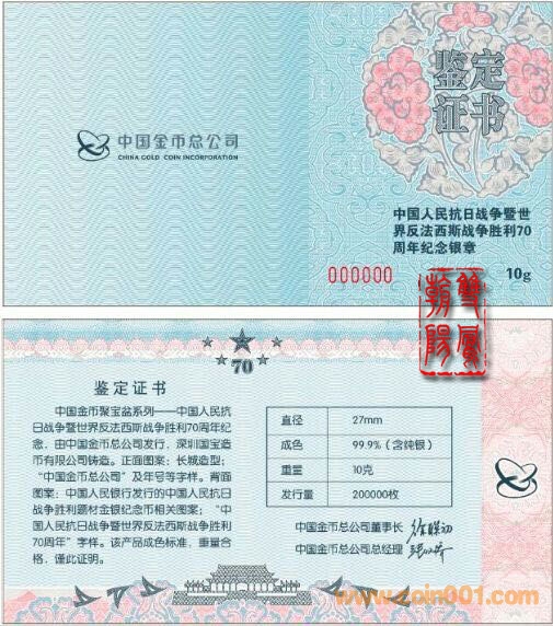 抗戰(zhàn)70周年30g銀章,368元/枚!