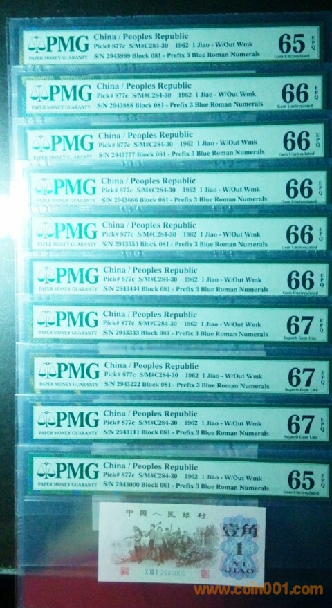 PMG65E~67E藍三,捆拆豹子號(9張豹子號+1張獅子號),品相一流,2890元包順豐,不議價。先款后貨,售出非假不退!