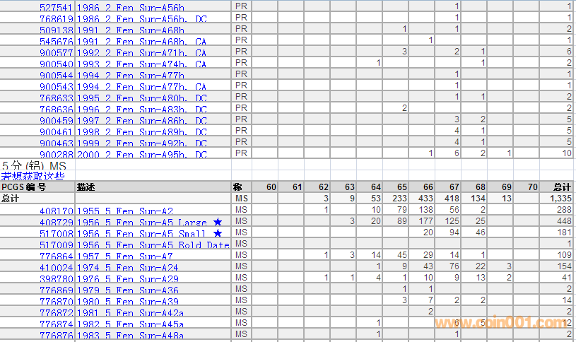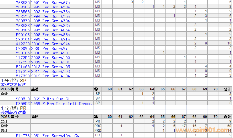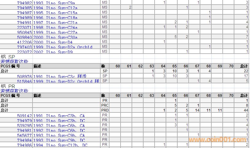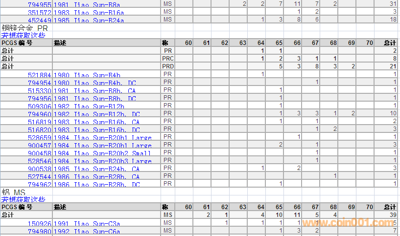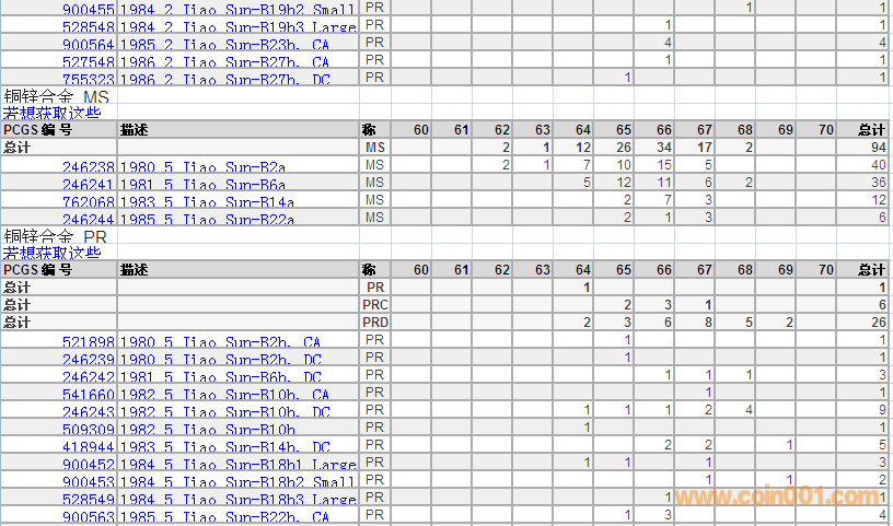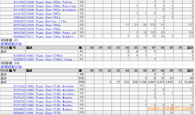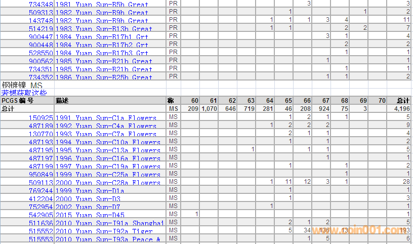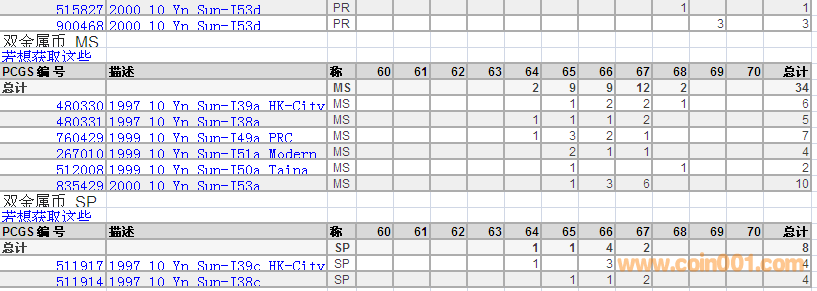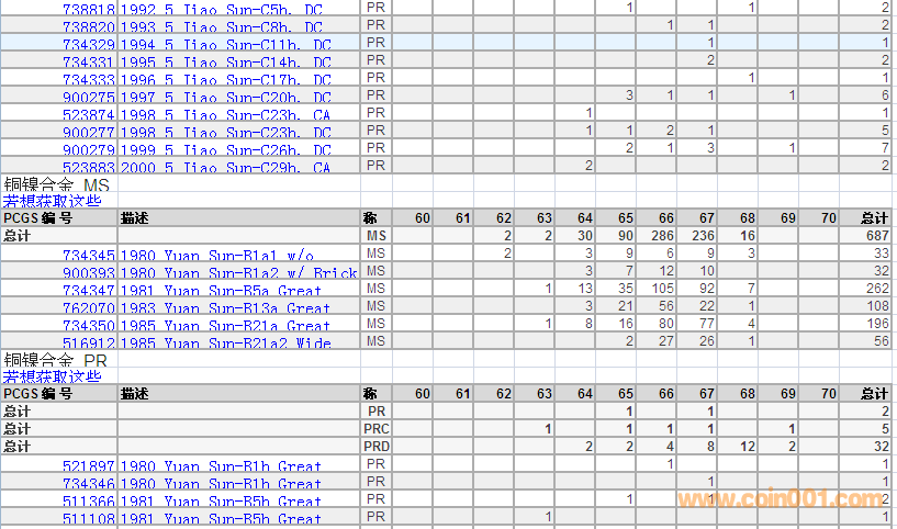PCGS硬幣評級數(shù)量報(bào)告 ..