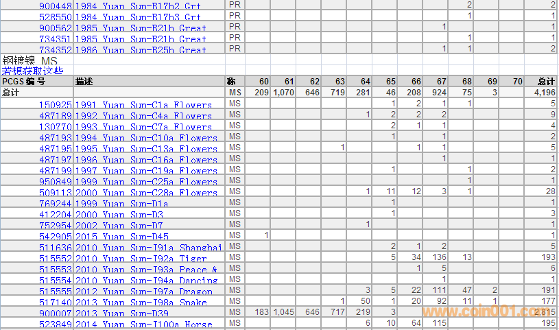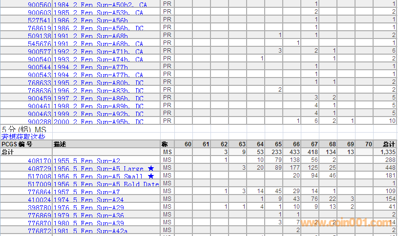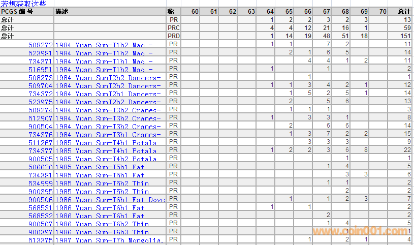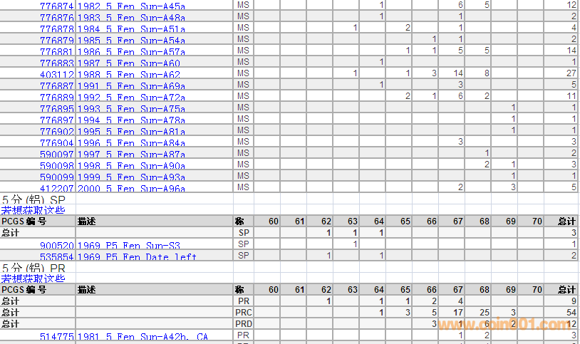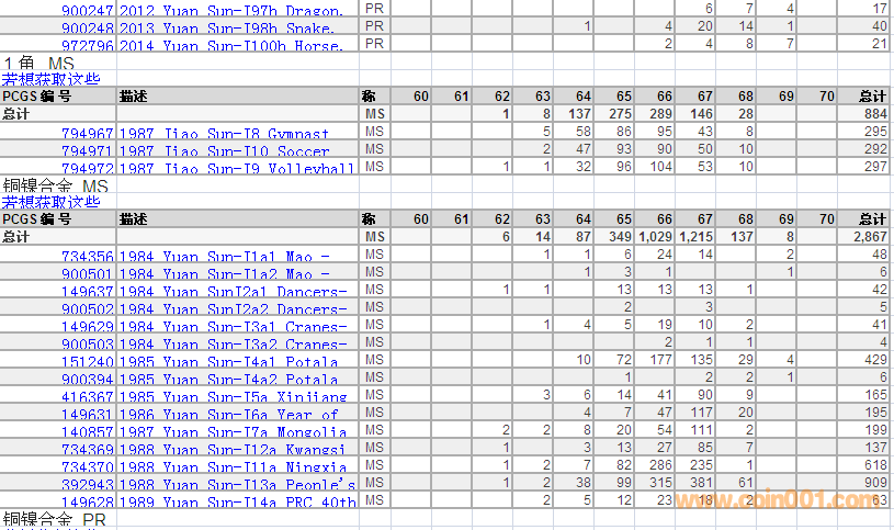 PCGS硬幣評級(jí)數(shù)量報(bào)告 ..