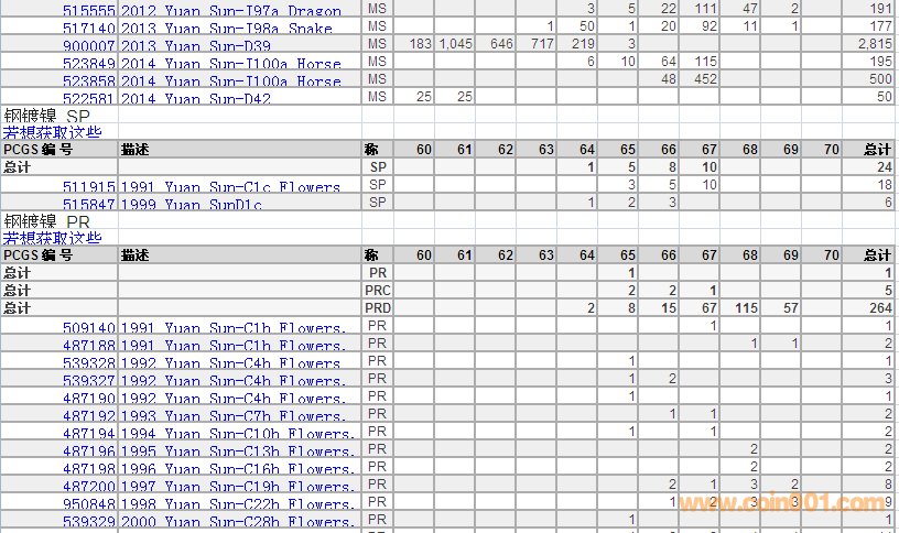 PCGS硬幣評(píng)級(jí)數(shù)量報(bào)告 ..