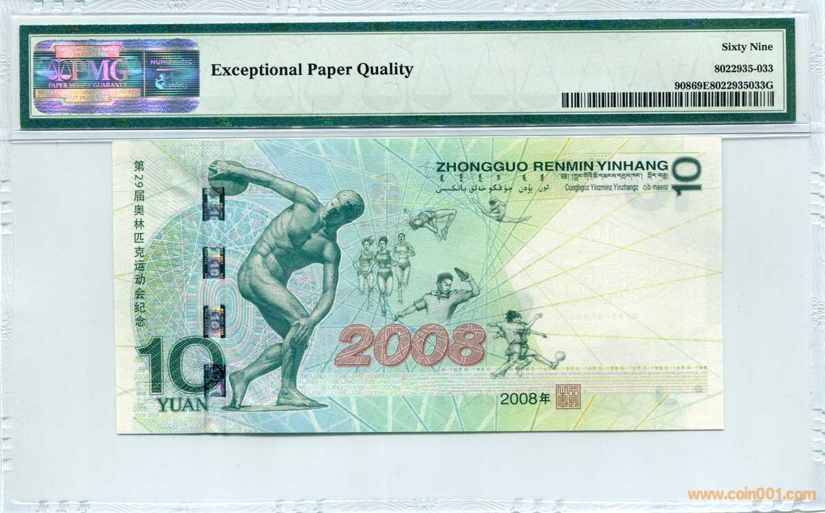 PMG 69分 EPQ 奧運(yùn)綠鈔 ..