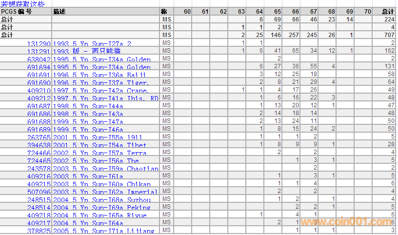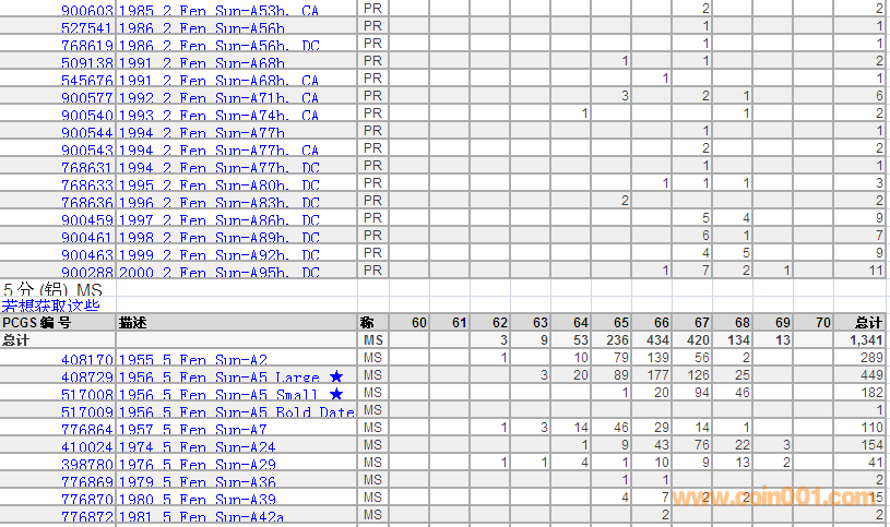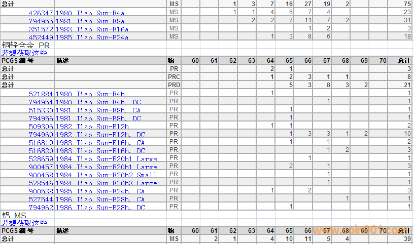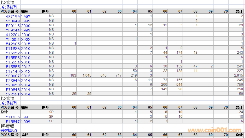 PCGS硬幣評級數(shù)量報(bào)告 ..