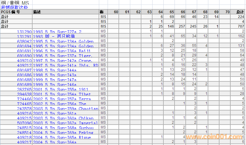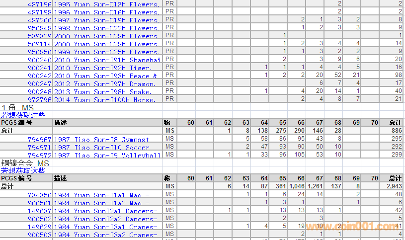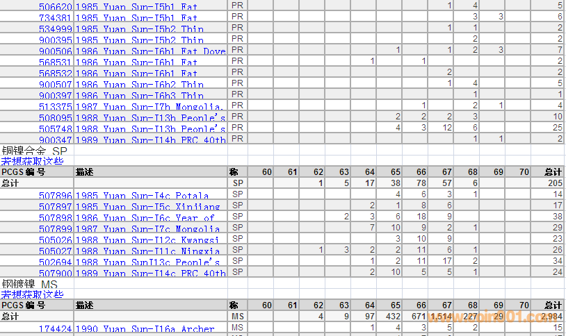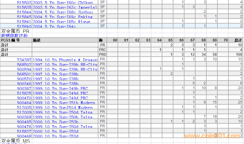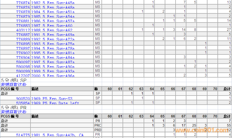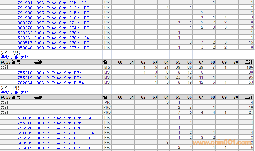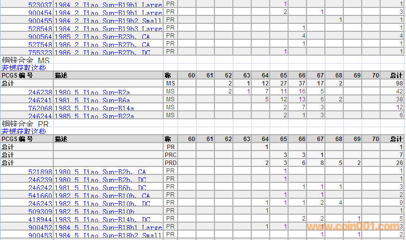 PCGS硬幣評級數(shù)量報告 ..