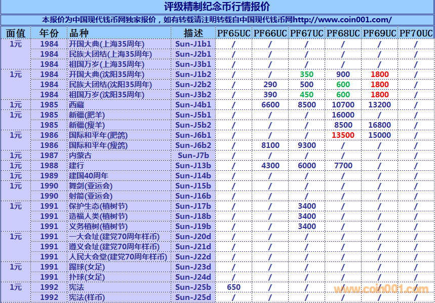 評級普通(精制)紀(jì)念幣交易