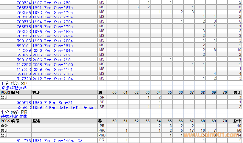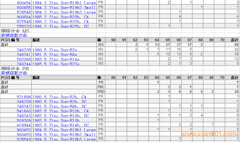 PCGS硬幣評(píng)級(jí)數(shù)量報(bào)告 ..