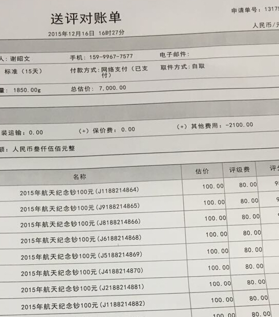 源泰評級:11月26日——航天紀(jì)念幣,鈔兌換首日即送評的客戶(限當(dāng)然9:00-18:00實(shí)物交付),可申請?jiān)刺┰u級特別提供的首日發(fā)行標(biāo)簽(每枚/張需額外支付20元標(biāo)簽費(fèi)用) --------------------------------- 我這種一枚評級費(fèi)是80元,當(dāng)天裸幣的成本是110元一張。 190元成本。