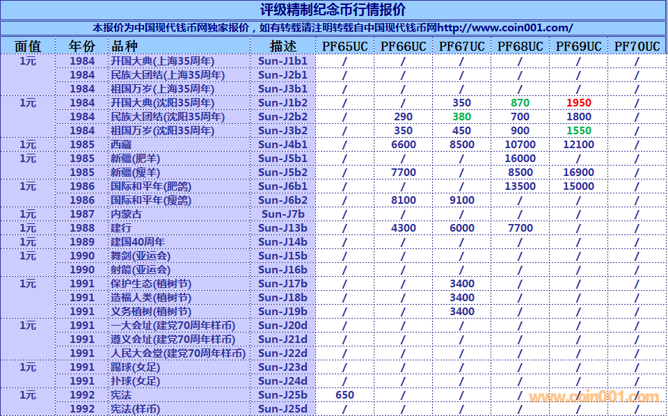 評級普通(精制)紀(jì)念幣交易
