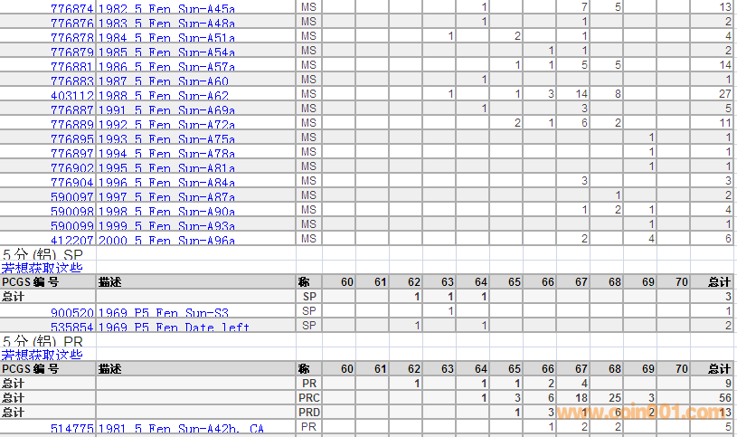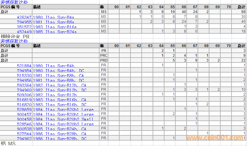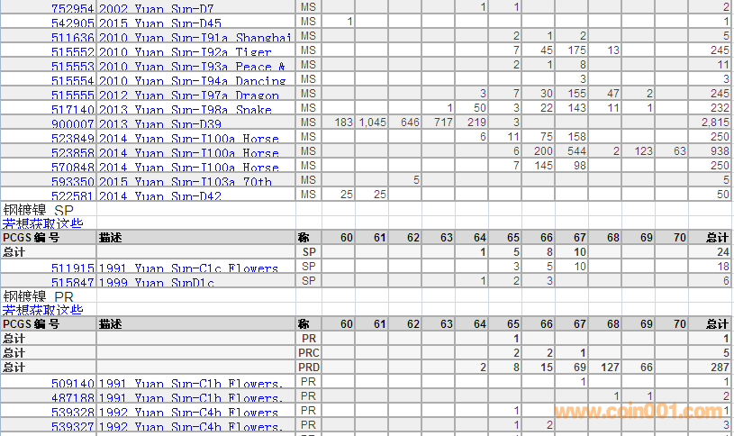 PCGS硬幣評(píng)級(jí)數(shù)量報(bào)告 ..