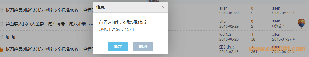 1. 增加會員對自己的交易帖前置新功能,通過現(xiàn)代幣購買“氣球”,可使會員本人的交易帖前置6小時