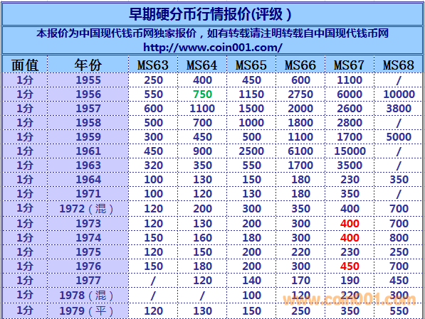 2016,3,1早期硬分幣報價 ..
