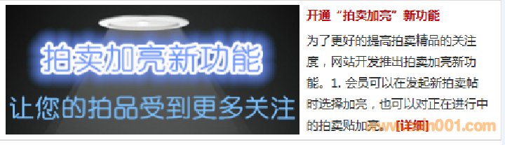 為了更好的提高拍賣精品的關注度,網(wǎng)站開發(fā)推出拍賣加亮新功能。