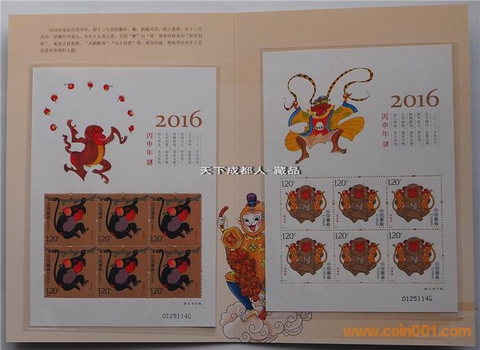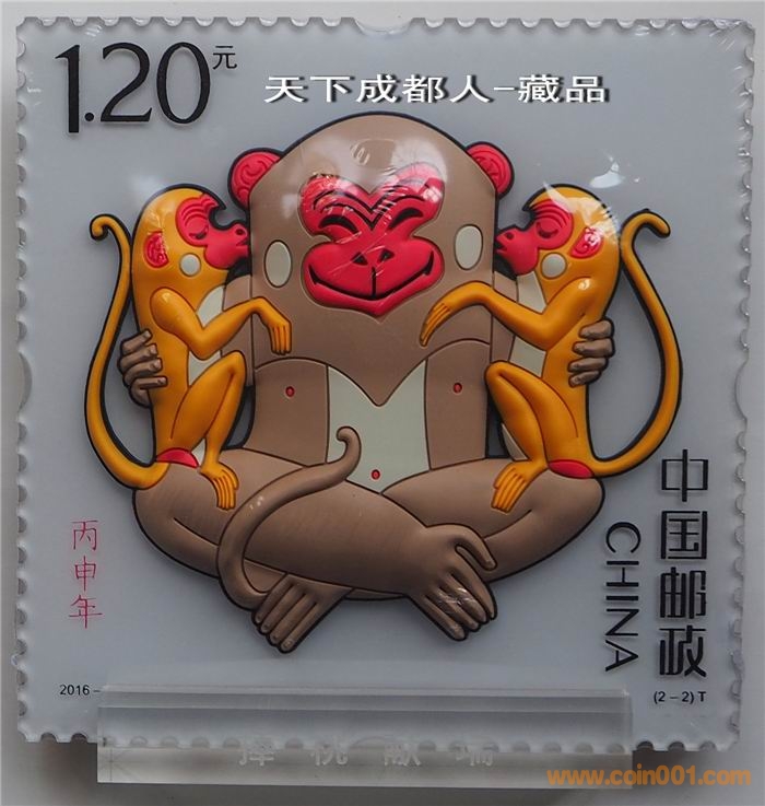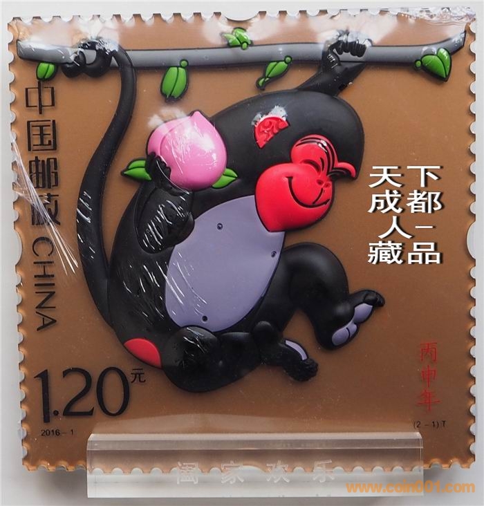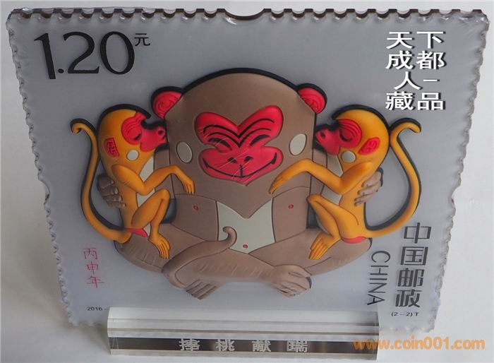 另類趣味藏品:中國集郵總公司特制《2016丙申年生肖猴小版配雙面浮雕擺件》原禮盒配支架裝;該禮盒內(nèi)含丙申年生肖猴小版各1版(志號:2016-1共6套、總面值14.4元、2.4/套),另配丙申年生肖猴雙面浮雕擺件(長寬16*16厘米)及支架;集郵司原裝禮盒精美包裝。