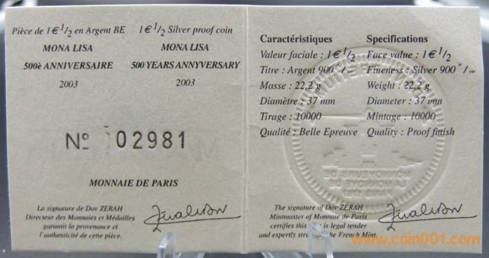 法國(guó)2003年蒙娜麗莎500 ..