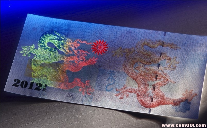 1、特殊工藝光變油墨:背面的“2012壬辰”字體采用特珠光變油墨技術,使畫面更富光彩性。