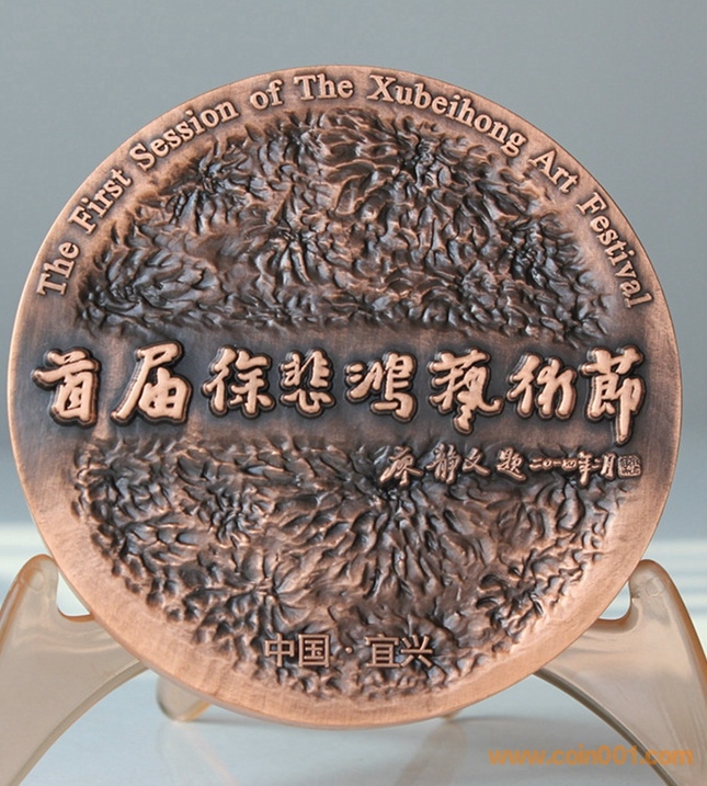 2014年甲午馬年,首屆徐悲鴻藝術(shù)節(jié)將于4月28日至5月2日在徐悲鴻大師故里---江蘇宜興新近成立的徐悲鴻藝術(shù)館經(jīng)典呈現(xiàn)。在此期間,將舉辦徐達(dá)章、徐悲鴻、徐慶平祖孫三代人書畫作品展覽,其中展出徐悲鴻大師作品90件。首屆徐悲鴻藝術(shù)節(jié)大銅章逢時(shí)而成,以表紀(jì)念。