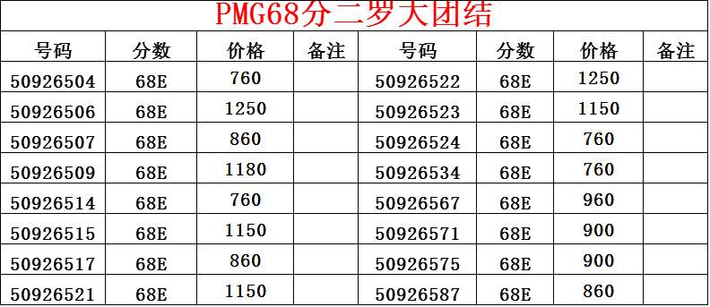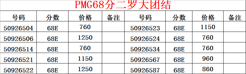 號碼 分數(shù) 價格 號碼 分數(shù) 價格