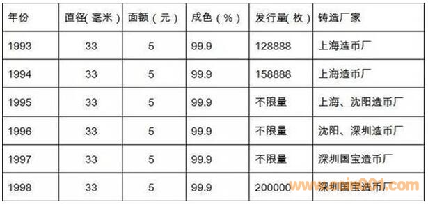 從老馮這里買到這套大熊貓銀銅紀(jì)念幣套裝后,我略略瀏覽了一下資料,發(fā)現(xiàn)1/2盎司的熊貓紀(jì)念幣,只發(fā)行了為數(shù)不多的幾個(gè)年份(見圖表),而這種裝幀版的熊貓銀銅幣套裝,我逛了這么些年郵幣卡市場,還是第一次見,于是,我開始了對(duì)大熊貓銀銅紀(jì)念幣套裝的關(guān)注。