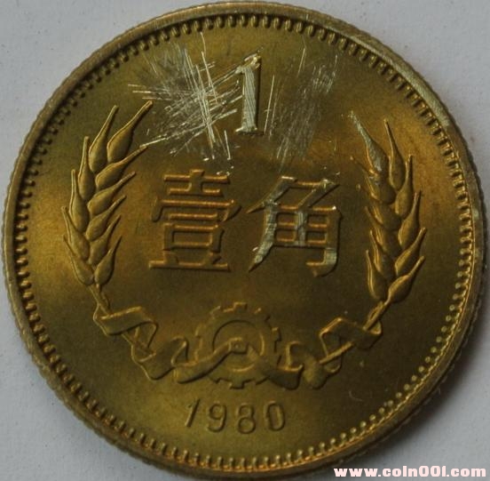 拿出一枚80年一角,對其表面進(jìn)行破壞,如果里外的顏色一致,那代表長城普制角幣的材質(zhì)的確存在差異。如果不一致就代表長城角幣不同的顏色是由于氧化造成。