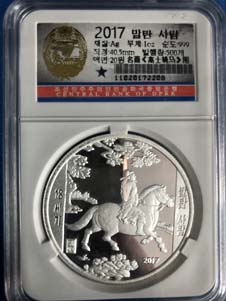 7.全新 2017年 朝鮮-古代名畫系列-高士騎馬圖 紀念銀幣 1oz999純銀