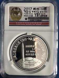 11.全新 2017年 朝鮮-先軍強國系列-火星14號 紀念銀幣 31g999純銀
