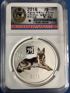15.全新 2018年 朝鮮-生肖狗 彩色紀念銀幣 1oz999純銀