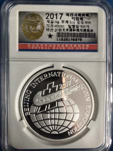 5.全新 2017年 朝鮮-紀念北京國際錢幣博覽會 紀念銀幣 1oz999純銀