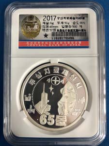 1.全新 2017年 朝鮮-全民免費醫(yī)療制度65周年 紀念銀幣 31g999純銀