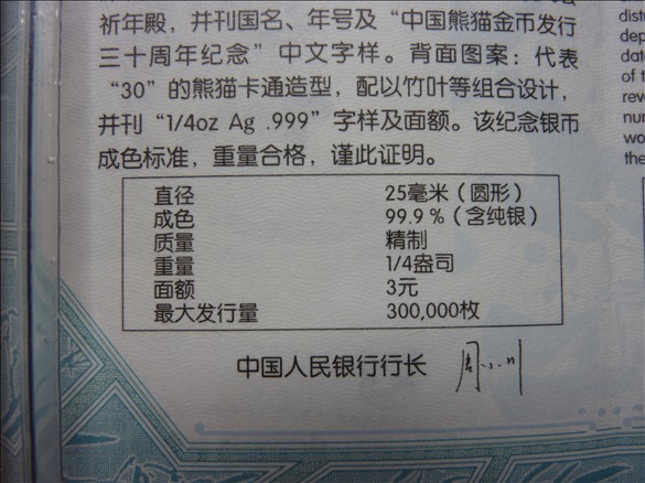 GBCA公博評級熊貓30周年4分之一盎士紀念精制銀幣  本來是精制PF69的嚴評成普制MS69   手頭上只有7個 價格帶原證書原包裝盒子的每個450元 當然了想便宜的朋友可以不要證書盒子就要評級盒子幣也可以的就每個400元 所有價格都是一口價 不議價議價不回 現(xiàn)在裸幣成本都要350元了自己算算還有誰更便宜 公博評級幣終身保真 劃算不劃算自己算 只有七個 證書號碼與評級幣號碼隨機發(fā)貨 全部七個都是MS69分  售完為止 13612568880  買的時候最好電話說明一下是否要原證書與原包裝盒子 價格差距五十元哦  跟帖確認后請電聯(lián)告知本人,因為本人比較忙少上線