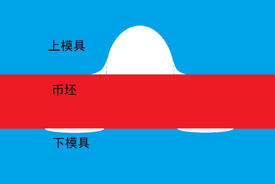 4. “經(jīng)過(guò)思考筆者認(rèn)為透打完全是另外一個(gè)過(guò)程形成的,跟力度和坯餅厚薄沒(méi)有直接關(guān)系。...所以,透打的成型,從力度和坯餅上找原因是緣木求魚(yú),根本原因還是要從模具上找,成幣幣面有凹凸,那就是因?yàn)槟>弑砻嬗辛藢?duì)應(yīng)的凸凹。”