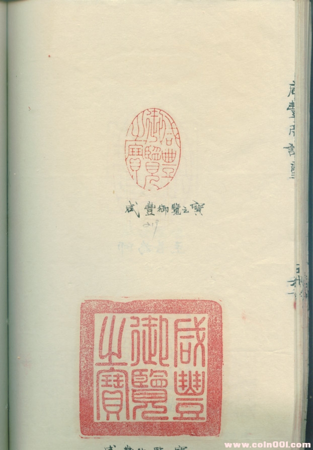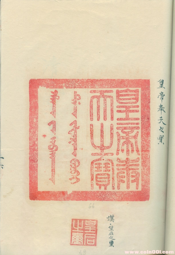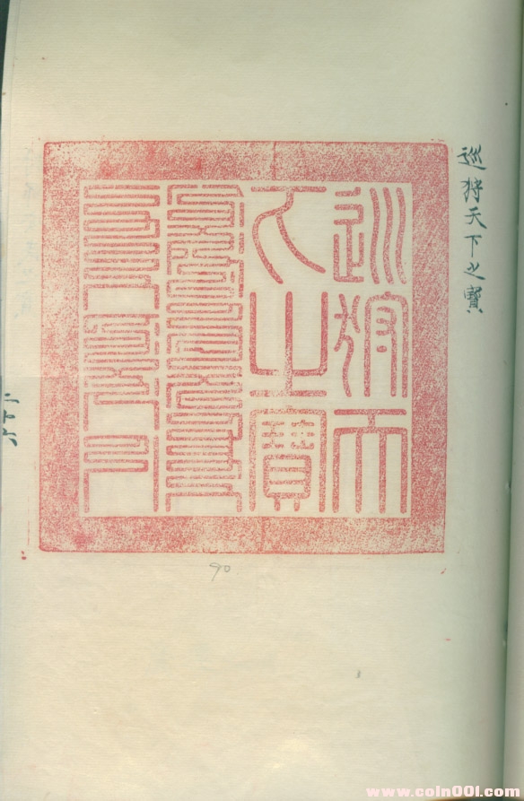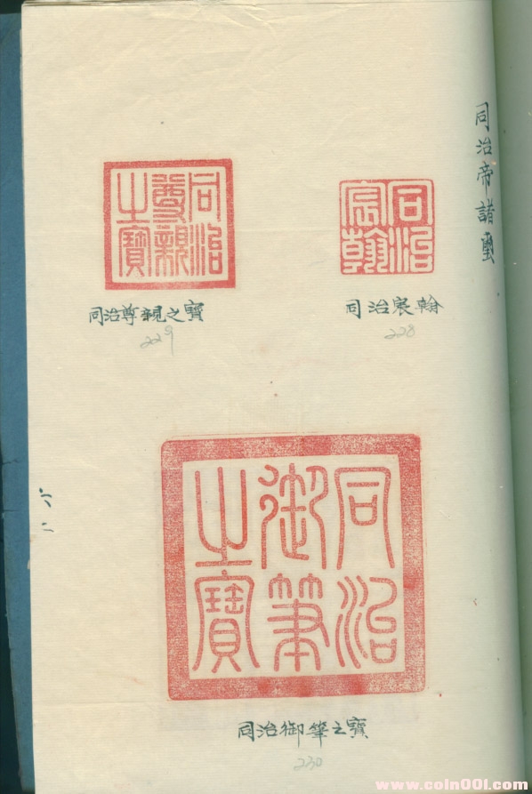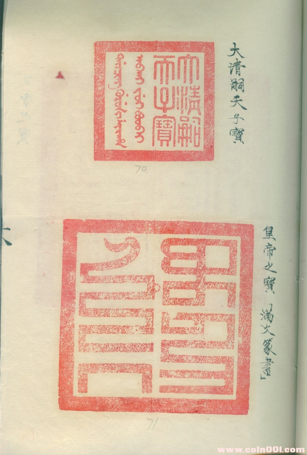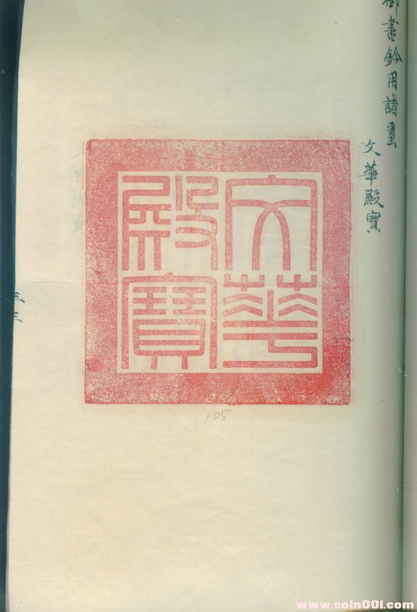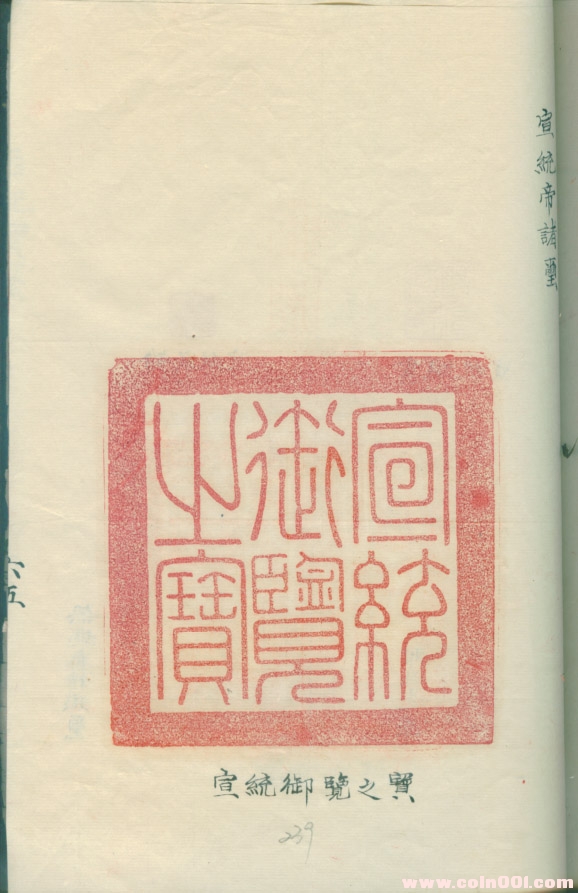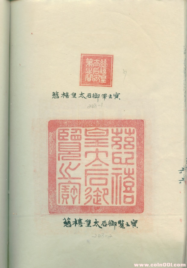 全印譜內容為明清帝后寶璽。其分類如下: 明代國寶璽印 55 枚; 道錄青詞鈐印諸璽 25 枚; 清代寶璽 37 枚; 宮殿名璽 40 枚; 康熙諸璽 24 枚; 雍正諸璽 25 枚; 乾隆諸璽 40 枚; 嘉慶諸璽 33 枚; 道光諸璽 9 枚; 咸豐諸璽 11 枚; 同治諸璽 10 枚; 光緒諸璽 7 枚 ;宣統(tǒng)諸璽 6 枚; 皇后嬪妃諸印 37 枚; 共計 359 個印文。其中著名的“清二十五寶”全部涵蓋,所鈐印與故宮博物院網(wǎng)上公布的尺寸一樣,均為明清帝后寶璽原鈐。另印鑒下均有手書文字釋文。毛筆小楷,字跡雅致,剛勁有力,十分罕見,具有非常重要的收藏價值。是研究書畫、印鑒的朋友們應該特別關注的精品。