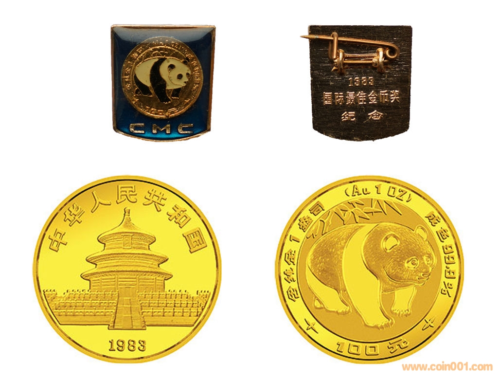 我懷著興奮的心情仔細端詳著這枚小小的心愛之物。她的正面是1983年版1盎司普制熊貓金幣的圖片,下方印有“CMC”字樣,底面以深藍色為襯托;她的背面印有“1983 --國際最佳金幣獎紀念”的中文??吹竭@些文化符號,我立即回憶起這是專門為紀念普制熊貓金幣榮獲克勞斯世界硬幣大獎加工的小胸章。時隔多年當自己再次看到這枚小胸章時,思緒立即被帶回到我國金幣市場三十九年的發(fā)展變化之中。