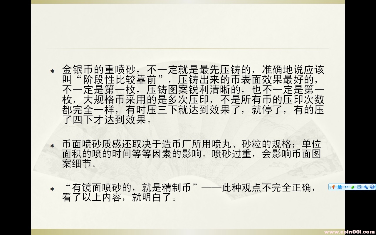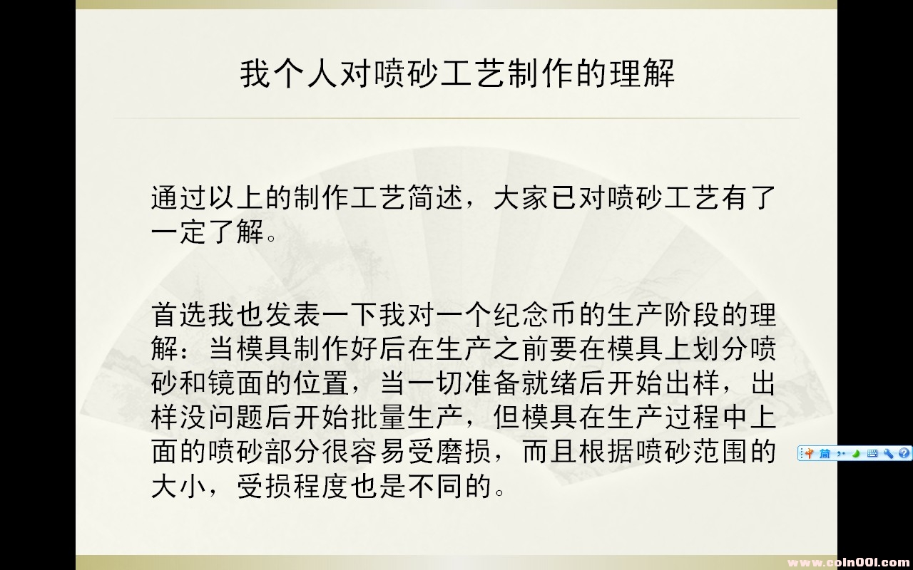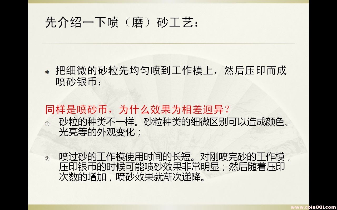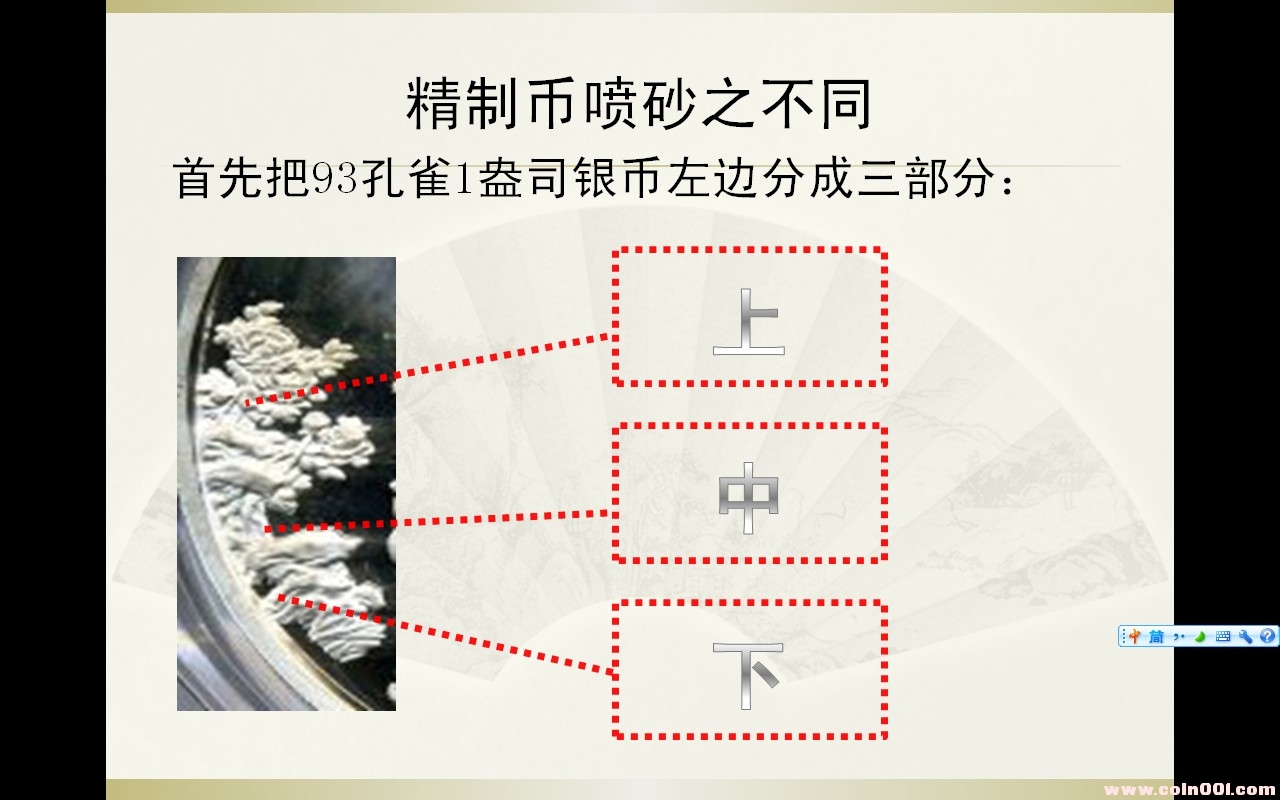 論93孔雀精制幣的噴砂工藝