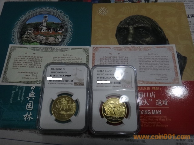 2004年北京人和蘇州園林 NGC PF68UC一對 色澤金黃,原始光澤。絕對未養(yǎng)護 有卡證 800元一對