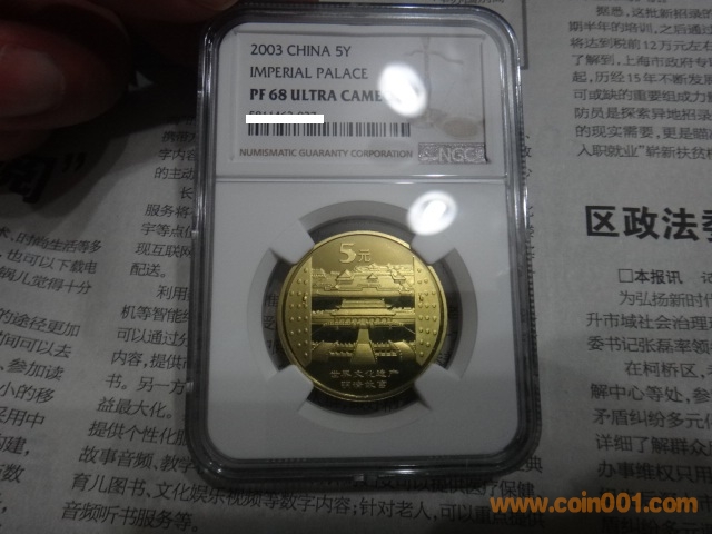 2003年故宮精制幣NGC PF68UC 色澤金黃,原始光澤。絕對未養(yǎng)護 無卡證 有2枚 350元一枚