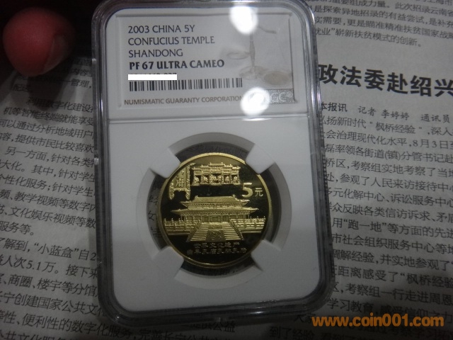 2003年孔廟精制幣NGC PF67UC 色澤金黃,原始光澤。絕對未養(yǎng)護 無卡證 有2枚 300元一枚
