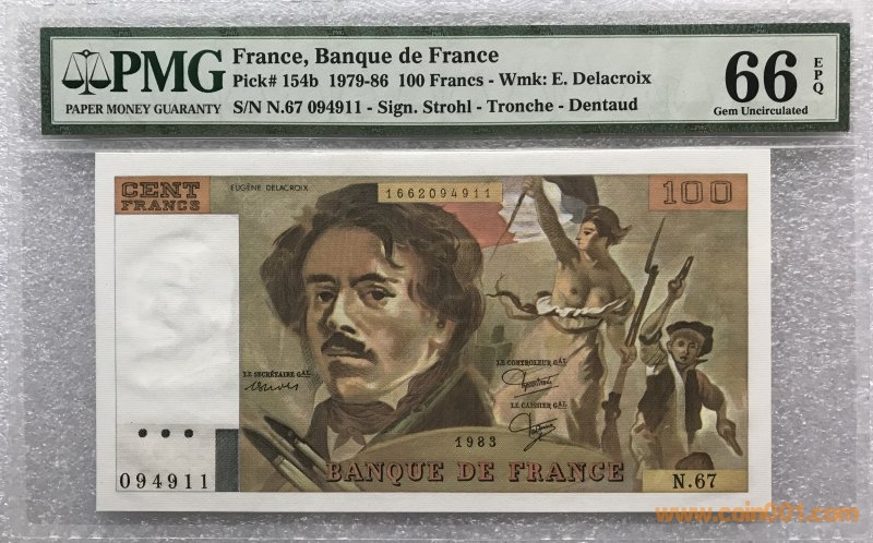PMG66 EPQ法國1983年100法 ..