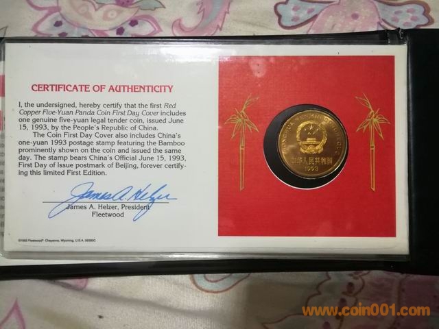 竹子郵票93年熊貓紀(jì)念幣封,原包裝原說(shuō)明書,幣有黑點(diǎn),888元出售。
