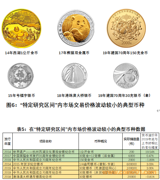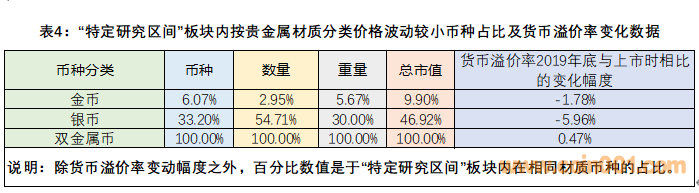 按貴金屬材質(zhì)分類(lèi),“特定研究區(qū)間”板塊內(nèi)交易價(jià)格相對(duì)穩(wěn)定的幣種數(shù)據(jù)見(jiàn)表4.