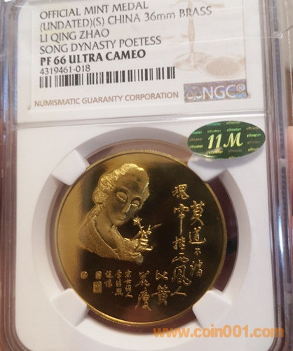 我最早看到小銅章再評級的實(shí)物是在參加2017年北京錢博會的時候,東西是上海幣形章收藏大佬李皞瑜手里的兩個人物章,一個是PF66UC綠標(biāo)的李清照小銅章,另一個是PF64UC金標(biāo)的祖沖之小銅章。當(dāng)時我拿著這兩個章反復(fù)欣賞,周版在旁指著李清照這個小銅章對我說,這個章的色澤非常漂亮和到位,小銅章就該是這種味道,所以他給了綠標(biāo)。于是,我記住了“色澤”這個關(guān)鍵詞,以后看小銅章我就非常關(guān)注章的色澤如何。也就是在那次錢博會上,恰好孫克勤老師在會上有一個專題講座,在提問環(huán)節(jié)我問起中國的再評級之路。記得當(dāng)時孫老師就很認(rèn)可錢幣的再評級,認(rèn)為中國也應(yīng)該有自己的再評級公司,再評級前景遠(yuǎn)大,并對11M再評級寄予了厚望。
