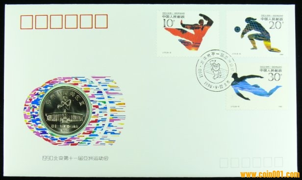 我國(guó)最早發(fā)行的體育郵幣封是中國(guó)郵票總公司北京市分公司于1990年發(fā)行的郵幣首日封,全套2枚,分別嵌入中國(guó)人民銀行為本屆亞運(yùn)會(huì)制作的面值一元的流通紀(jì)念幣。