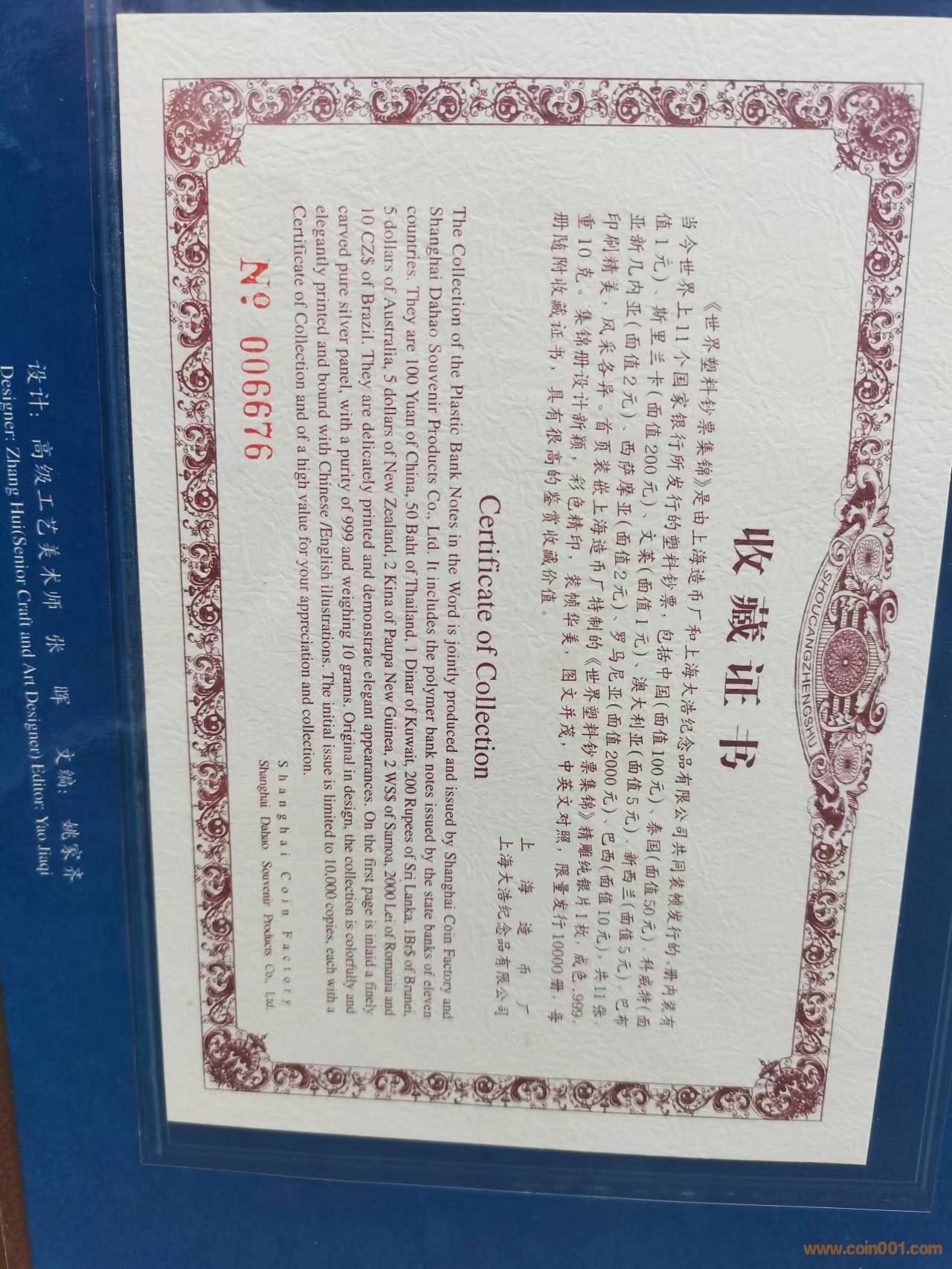 代友售世界21張國(guó)家塑料鈔,一本冊(cè)子含11張各國(guó)塑料鈔,其中包括中國(guó)龍鈔(面值100元)、澳大利亞(面值5元)、 泰國(guó)(面值50元),科威特(面值1元),斯里蘭卡(面值200元)、文萊 (面值1元)、新西蘭(面值5元)、巴布亞新幾內(nèi)(面值2元)、西薩摩亞(面值2元)、羅馬尼亞(面值2000元)、巴西(面值10元);另外冊(cè)子外單含10張,包括臺(tái)灣(面值50元)、香港(面值10元)、危地馬拉(面值1)、尼加拉瓜(面值10)、贊比亞2張(K500,K1000)等,共售2800元,手機(jī)聯(lián)系確認(rèn)為準(zhǔn),13516712697(微信)
