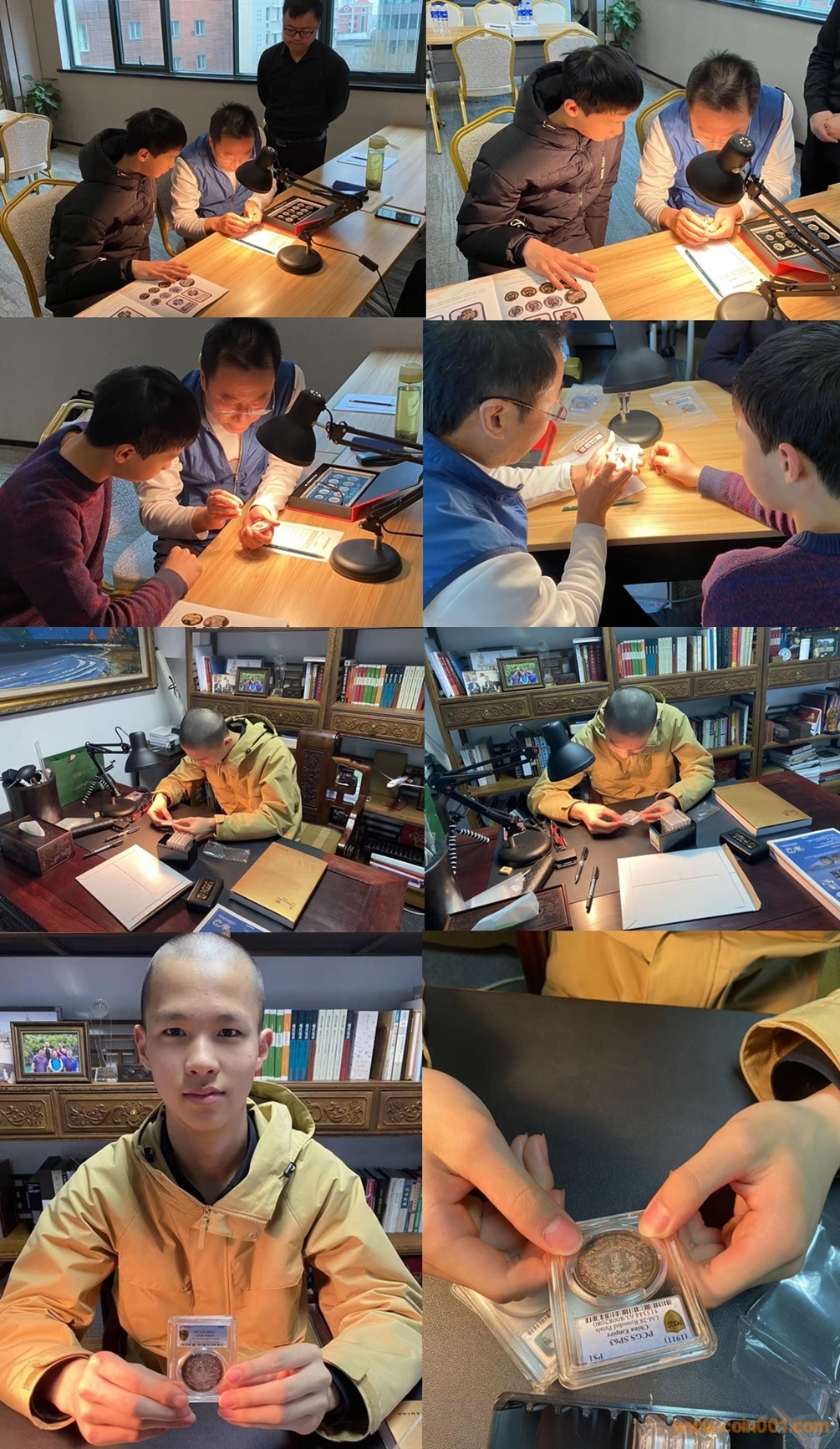 五月,在現(xiàn)代錢幣網(wǎng)孫老師辦公室中看幣,機(jī)制幣很貴的品種——長須龍等精品。以及孫老師指導(dǎo)我看幣的照片。到了網(wǎng)站,發(fā)現(xiàn)網(wǎng)站的工作人員真的好忙,但大家看到我們來了都起身迎接我們,我們很感動(dòng),王叔叔還給我和我爸爸拿了兩瓶可樂,楊姐姐和一個(gè)阿姨熱切的帶我們?nèi)O老師辦公室,顧叔叔和郭叔叔本來在忙自己的事,看到我們離開都放下事情來送我們。感覺他們都很和藹,他們的北京口音讓我感覺特別親切,很多網(wǎng)站人員都給我的文章點(diǎn)贊,謝謝大家?,F(xiàn)在月拍的拍品都有600多項(xiàng),跟以前的大拍差不多了,他們每天要一項(xiàng)一項(xiàng)拍照,還要手動(dòng)輸入商品內(nèi)容,任務(wù)量特別大,接受拍品時(shí)拆快遞就拆了一個(gè)多小時(shí),很多人周六周日都要加班,記得有一次王版凌晨12點(diǎn)半回復(fù)我消息,我回復(fù)時(shí)看到時(shí)間都嚇了一跳,他們都特別辛苦。所以請(qǐng)大家多多理解網(wǎng)站的工作人員,他們真的很辛苦,謝謝大家。