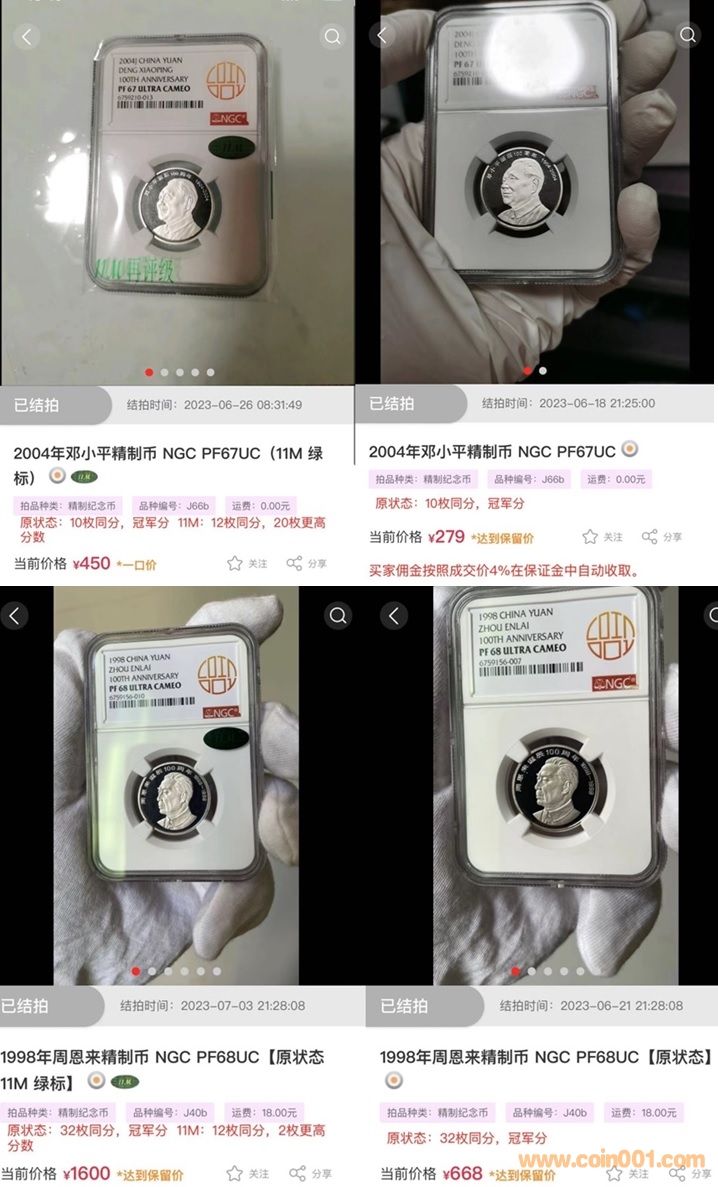 筆者認(rèn)為同一枚幣,原狀態(tài)貼再評(píng)級(jí)標(biāo)的幣相比原狀態(tài)標(biāo)的幣再相比養(yǎng)護(hù)幣更有投資和收藏潛力。養(yǎng)護(hù)幣的價(jià)格不如原狀態(tài)幣的價(jià)格,最關(guān)鍵的是大家一般更喜歡原汁原味的幣。我是從小銅章開始收藏的,小銅章的原封相比幣更多。如果我們有同樣的兩枚章,我和我父親在有一枚原封的基礎(chǔ)上才會(huì)拆一枚原封去評(píng)級(jí)。所以我們一直都很注重原狀態(tài)的幣章,自從NGC為現(xiàn)代網(wǎng)推出原狀態(tài)評(píng)級(jí)標(biāo)簽之后,我就送了不少原封的章,例如《曹雪芹》《法門寺》。數(shù)據(jù)表明——是原狀態(tài)的幣但是沒有打原狀態(tài)標(biāo)簽的69分朱鹮的價(jià)格為1300多,而有了原狀態(tài)標(biāo)簽的朱鹮拍到了2000多,可見大家對(duì)于原狀態(tài)的標(biāo)簽的喜愛,也可見帶現(xiàn)代網(wǎng)原狀態(tài)標(biāo)與原狀態(tài)不帶標(biāo)的相對(duì)的議價(jià)空間之大。以往大家購買再評(píng)級(jí)貼標(biāo)幣的原因一般原因?yàn)闊o養(yǎng)護(hù),現(xiàn)在有了原狀態(tài)標(biāo),送評(píng)再評(píng)級(jí)的人可能會(huì)少一些。但是,原狀態(tài)標(biāo)幣再貼上再評(píng)級(jí)標(biāo)的議價(jià)空間更大。此時(shí)購買原狀態(tài)貼再評(píng)級(jí)標(biāo)的意義就真正為購買同等分?jǐn)?shù)之間品相較好或這枚幣低評(píng)的現(xiàn)象。所以在這時(shí)貼再評(píng)級(jí)標(biāo)就更有意義,相比原狀態(tài)不貼再評(píng)級(jí)標(biāo)更有議價(jià)空間。現(xiàn)代網(wǎng)上拍一枚周總理,68分原狀態(tài)標(biāo)只有600多,而68分11M標(biāo)價(jià)格到了1500多。之前現(xiàn)代網(wǎng)原狀態(tài)的幣只能在網(wǎng)站拍賣時(shí)顯示或在網(wǎng)站中查詢,在現(xiàn)實(shí)交易時(shí)不方便,PCGS為現(xiàn)代網(wǎng)推出的標(biāo)簽只對(duì)現(xiàn)代網(wǎng)單方面負(fù)責(zé),PCGS并不承認(rèn)原狀態(tài)標(biāo)簽,所以我對(duì)此有所顧慮,基本上并未送評(píng)也并未購買任何品種的現(xiàn)代網(wǎng)原狀態(tài)的幣和章,但自從NGC與現(xiàn)代網(wǎng)聯(lián)合推出原狀態(tài)標(biāo)簽并且NGC單獨(dú)紀(jì)錄評(píng)級(jí)數(shù)量之后,我的顧慮就煙消云散,我送評(píng)原狀態(tài)一大批原封或大開門的藏品,因?yàn)槲医K于能夠全身心的投入原狀態(tài)當(dāng)中了,我也送評(píng)并購買了一些帶有原狀態(tài)標(biāo)的好幣好章,本人認(rèn)為,現(xiàn)代網(wǎng)原狀態(tài)的幣或章在將來一定有很大的升值潛力。下圖是朱鹮帶原狀態(tài)標(biāo)與原狀態(tài)不帶標(biāo)的價(jià)格對(duì)比圖,同品種同分?jǐn)?shù)原狀態(tài)貼再評(píng)級(jí)標(biāo)與原狀態(tài)未貼再評(píng)級(jí)標(biāo)價(jià)格對(duì)比圖,一些原封章的圖片以及本人送評(píng)并購買的原狀態(tài)的藏品。