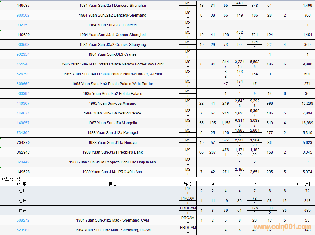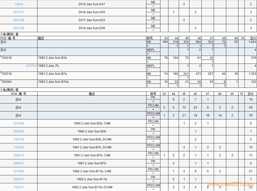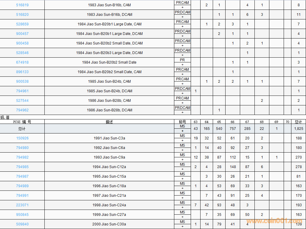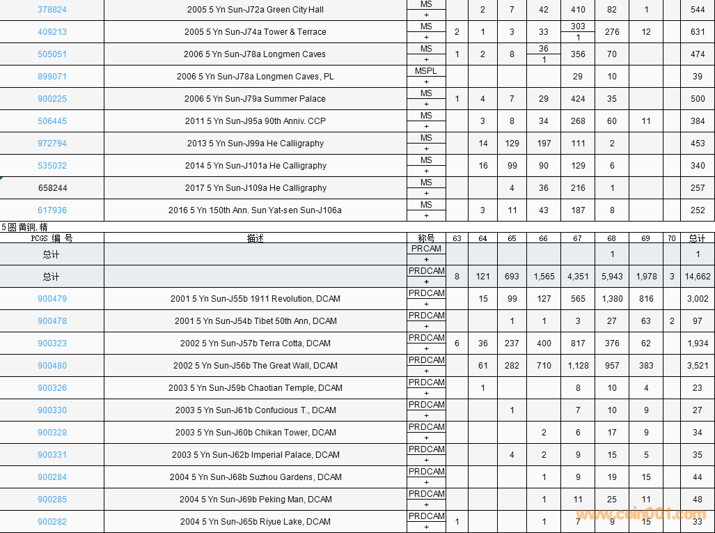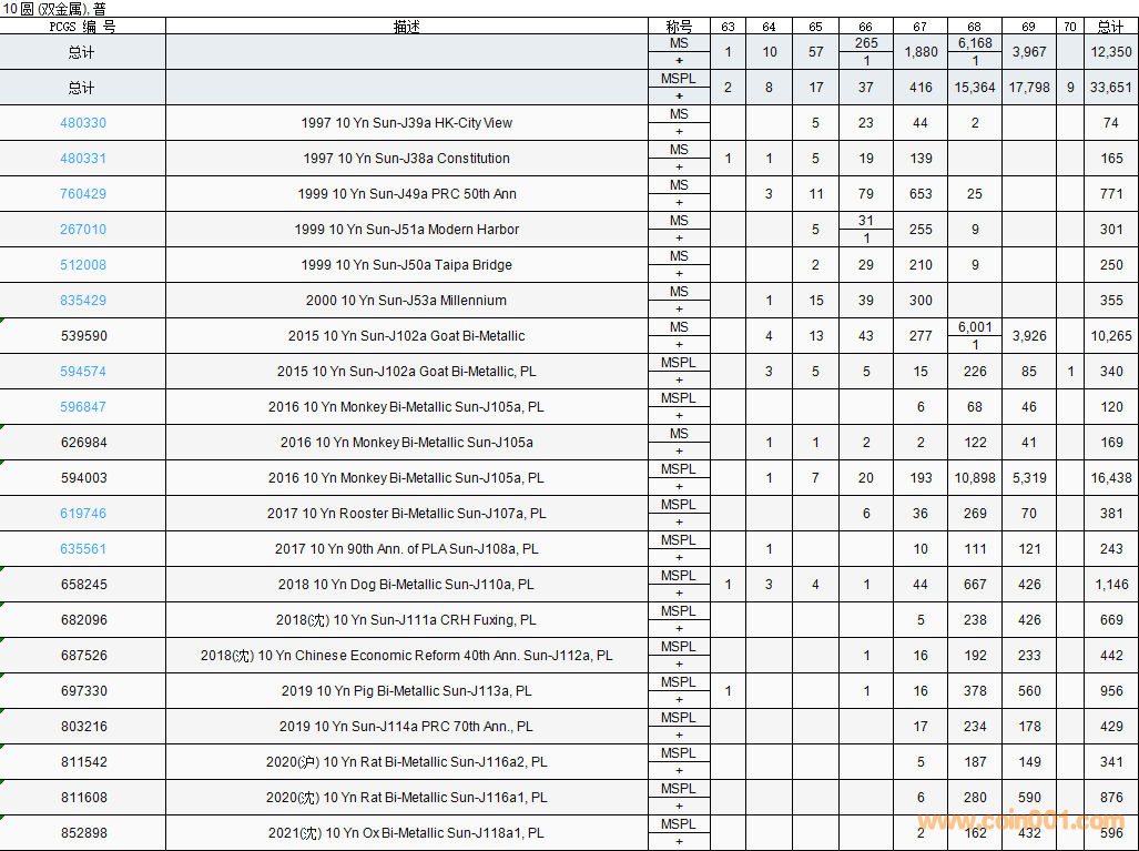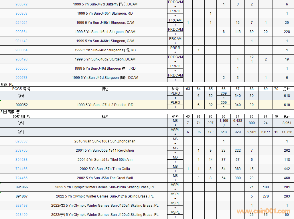 PCGS硬幣評(píng)級(jí)數(shù)量報(bào)告( ..