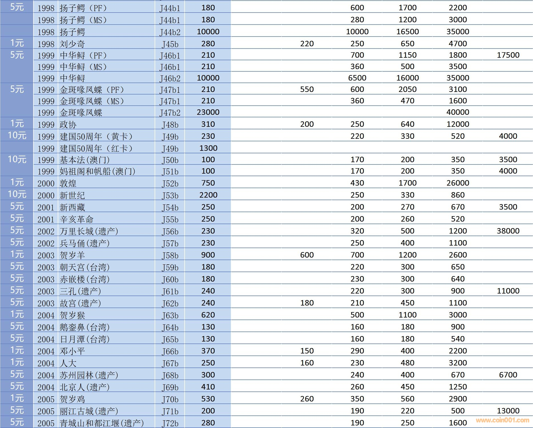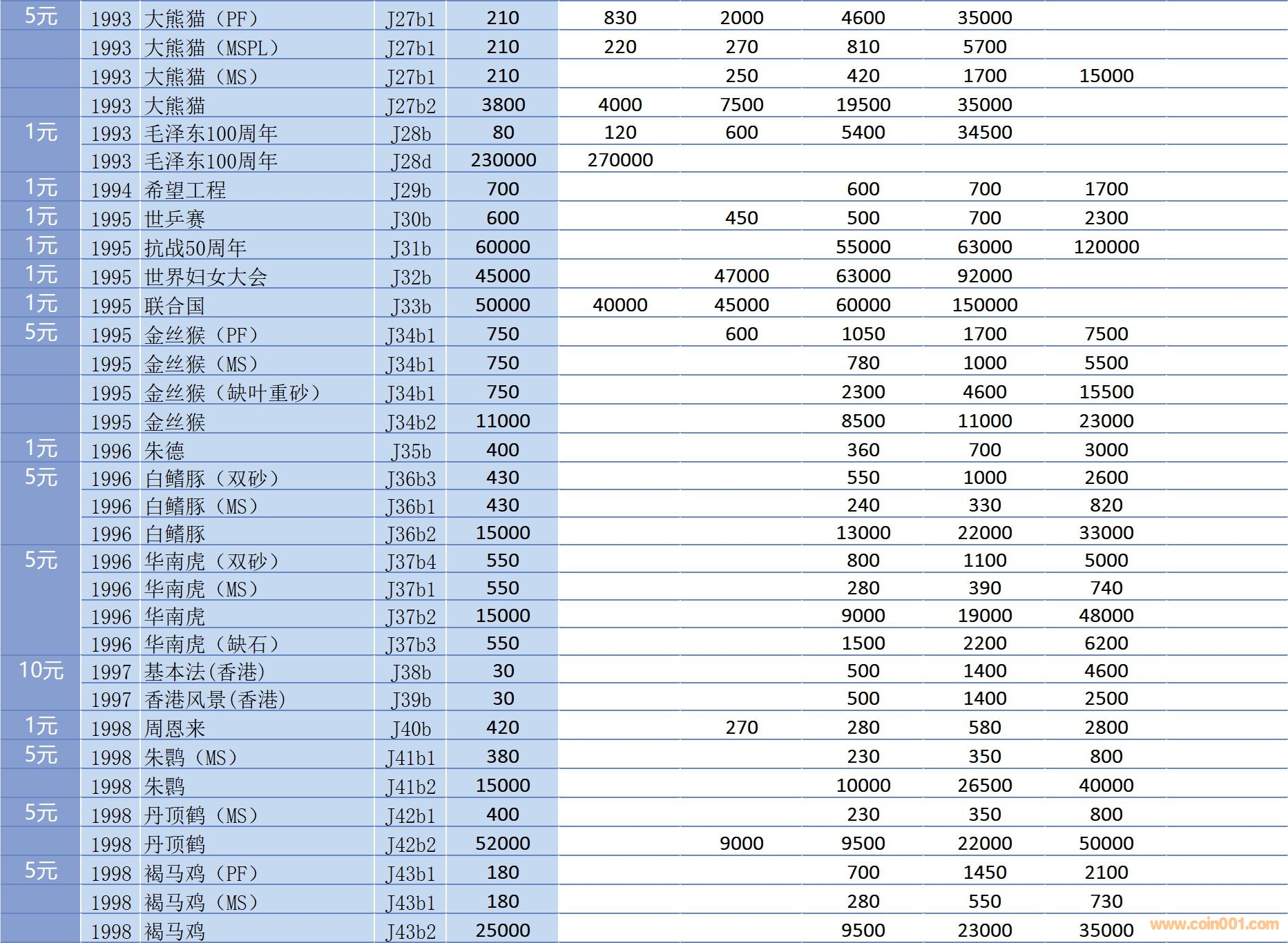 普通(精制)紀(jì)念幣交易