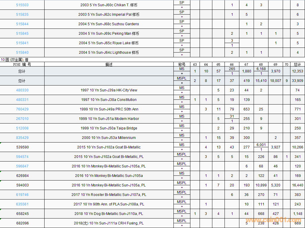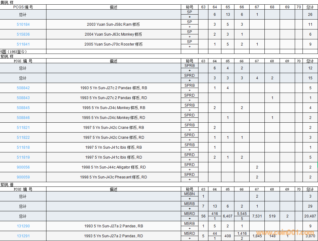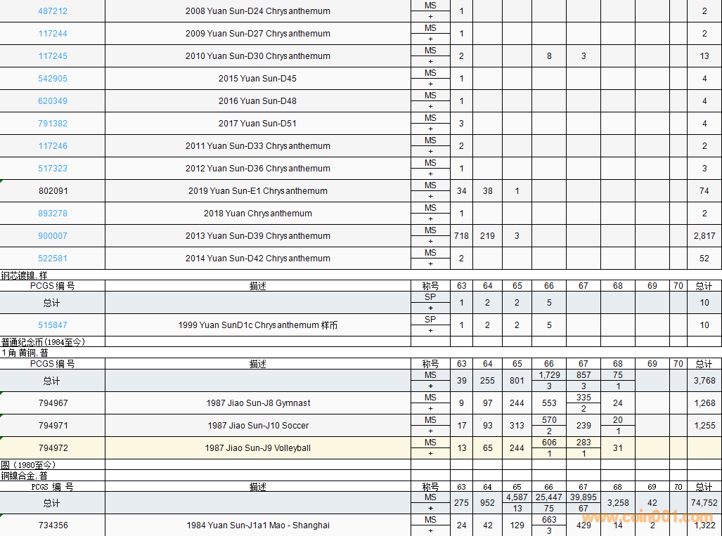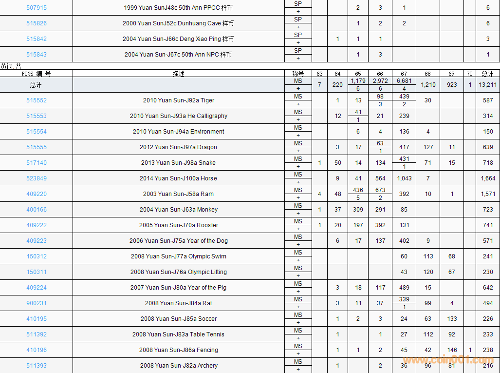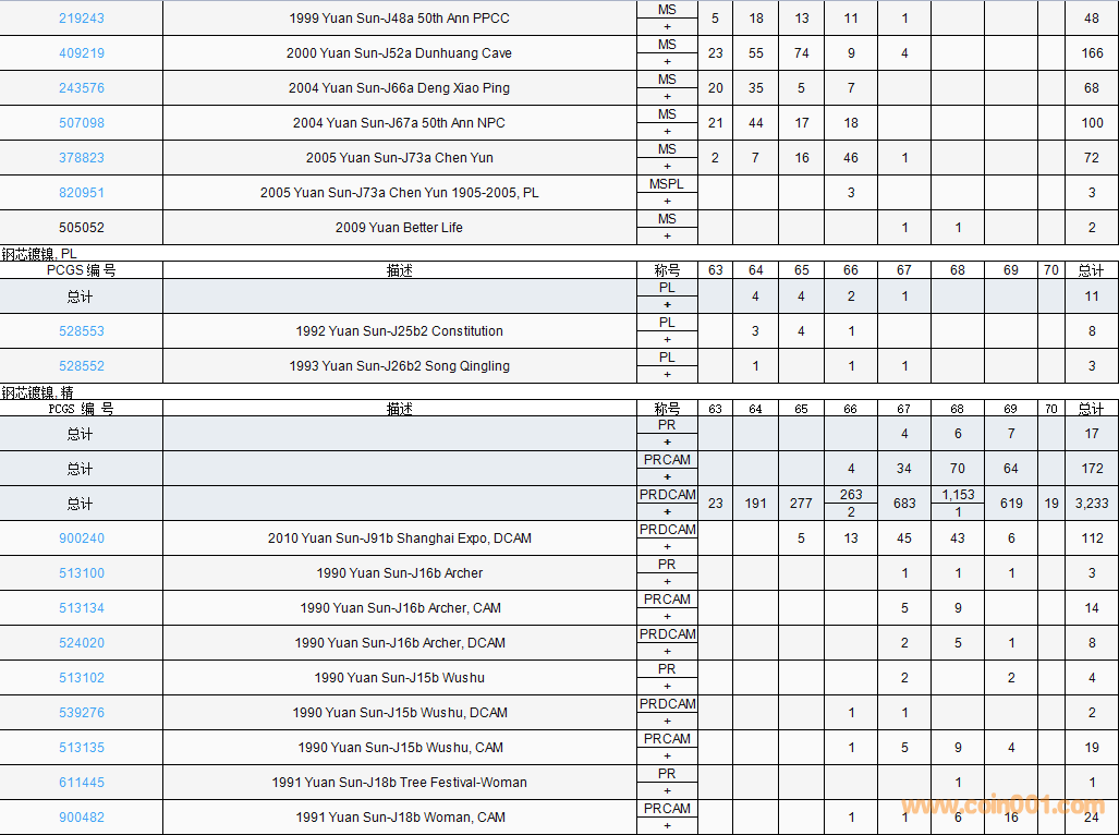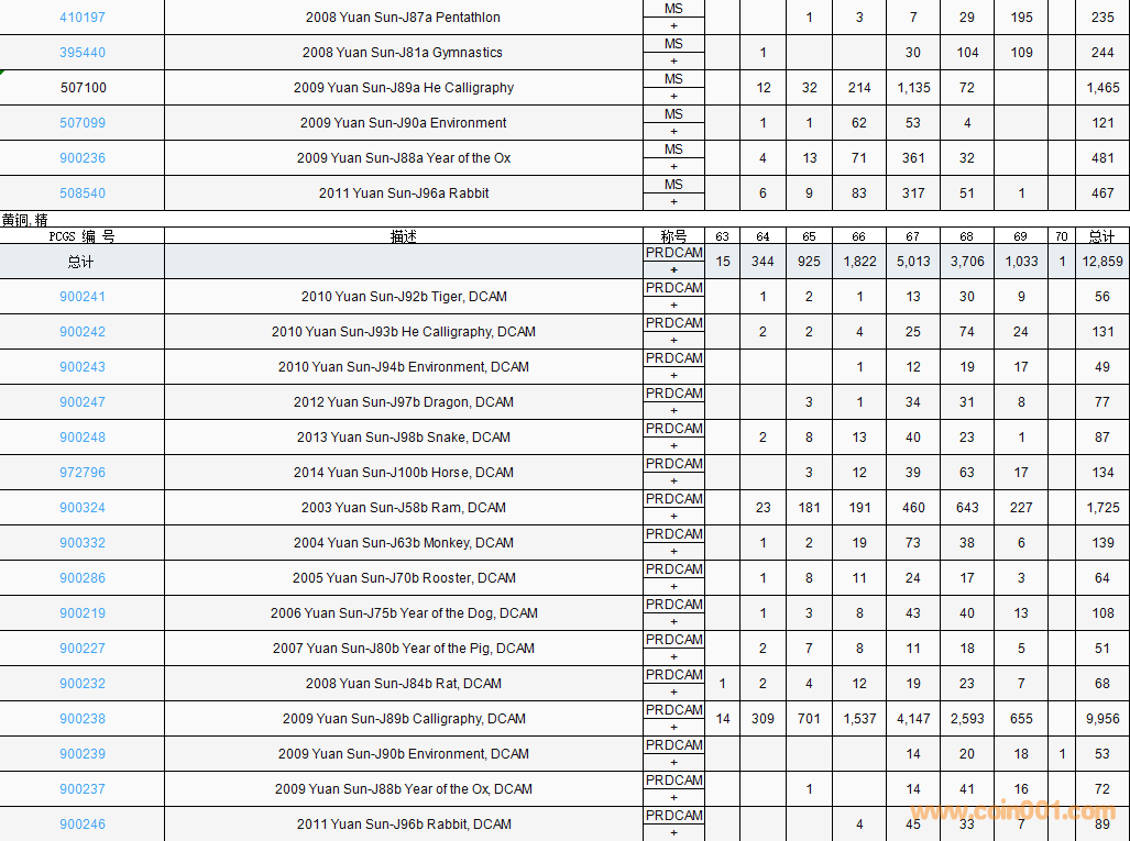 PCGS硬幣評(píng)級(jí)數(shù)量報(bào)告( ..