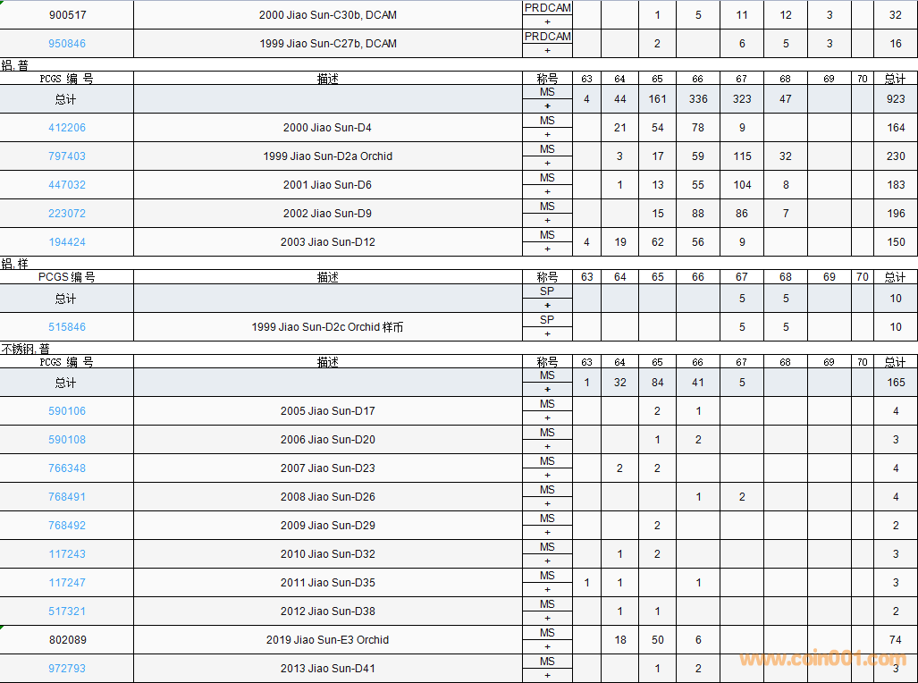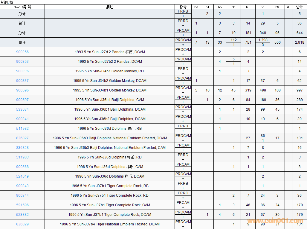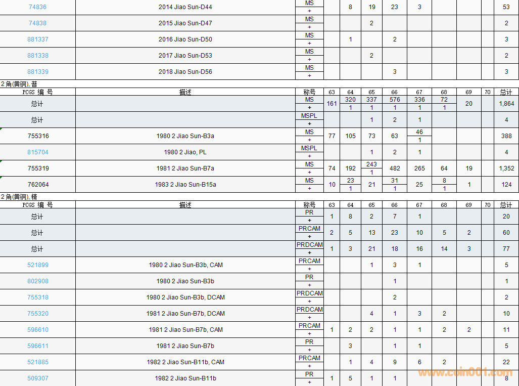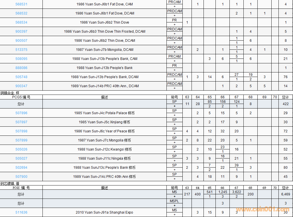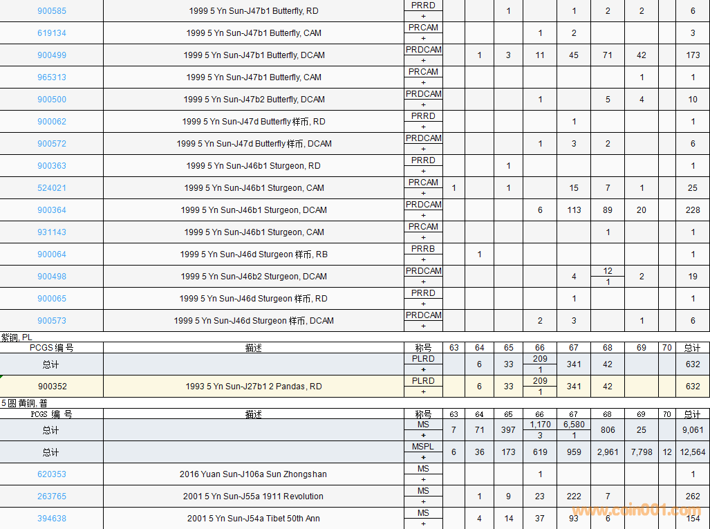 PCGS硬幣評(píng)級(jí)數(shù)量報(bào)告( ..